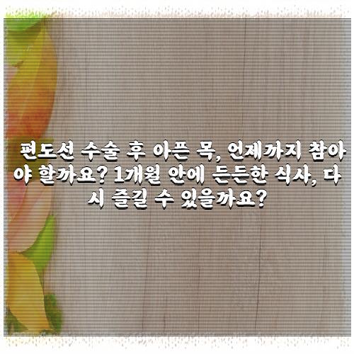 편도선 수술 후 아픈 목, 언제까지 참아야 할까요? 1개월 안에 든든한 식사, 다시 즐길 수 있을까요?