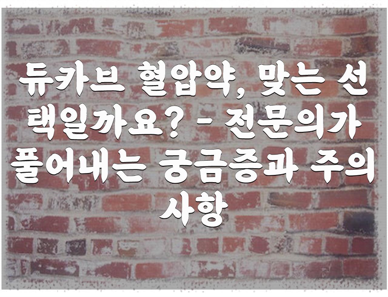 듀카브 혈압약, 맞는 선택일까요? - 전문의가 풀어내는 궁금증과 주의사항 관련내용 확인 해 보시겠습니다.