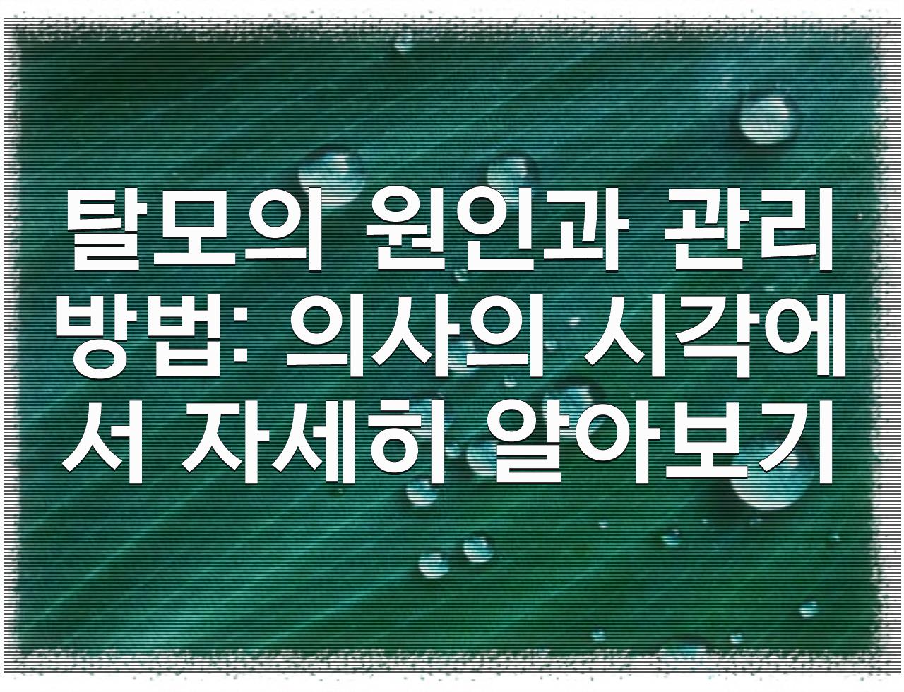 탈모의 원인 자~ 그럼, 탈모의 원인과 관리 방법: 의사의 시각에서 자세히 알아보기 써머리 합니다.